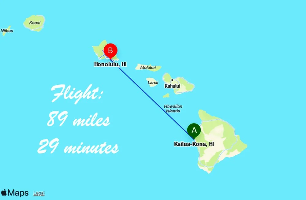 Kona’s airport is busy; passengers number approximately 200K monthly and 2M annually, with Los Angeles, Maui and Honolulu the top destinations.
